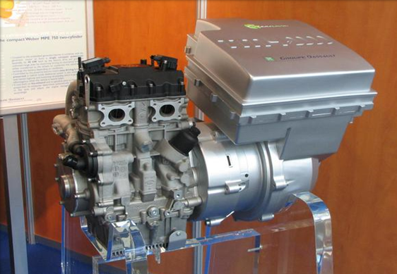 Conjunto híbrido, nótese el tamaño del motor de combustión interna.