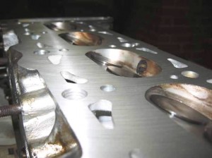 En los motores con árbol de levas a la cabeza, esto puede alterar la geometría de la impulsión de la leva sobre la culata, lo bastante para retardar la sincronización que puede afectar las emisiones, funcionamiento y capacidad de apertura de las válvulas. También reduce el volumen de la cámara de combustión que aumenta la compresión con riesgo de detonación y aumenta la temperatura perjudicando el motor. La separación entre las válvulas y los pistones, que en algunos motores es bastante pequeña, se achica aún más. Para reducir al mínimo los cambios en la altura de la culata, el maquinado no debe quitar más material que lo necesario para lograr la planitud correcta. Una cabeza se puede restaurar quitando solamente un par de milésimas de mm de metal – a menos que una cubicación adecuada, permita quitar mas material. En casos donde está agrietada y ha sido reparada con soldadura autógena, puede ser necesario sacar una cantidad considerable de metal para restaurar la superficie. Las cabezas de aluminio se deben enderezar siempre antes de volver a allanar. Esto reducirá sustancialmente la cantidad de material que tenga que ser quitado de la cabeza para devolverle su planitud.